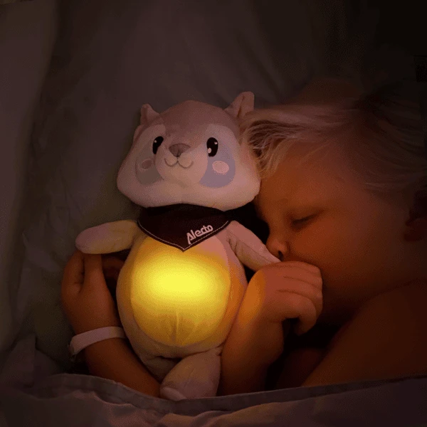 - 1 x pluche knuffel met nachtlampje, wasbeer