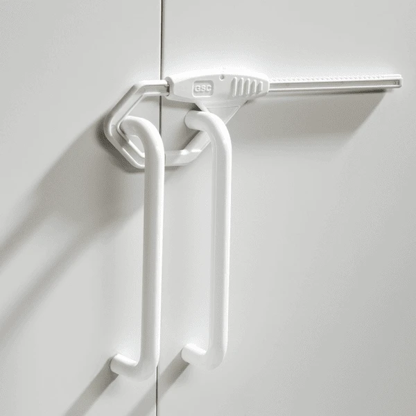 In grootte verstelbaar en gemakkelijk te gebruiken Er hoeft niet geplakt, noch geboord te worden. De vergrendeling wordt vanuit de verpakking makkelijk op de grepen gezet.