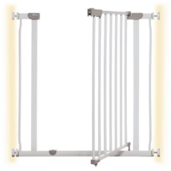 Het hekje kan in openingen van 73,5 tot 106,3 cm worden gebruikt. Met verlengstukken is het zelfs geschikt voor deuren met een breedte van 119,3 cm. Bij meer dan 2 verlengstukken zijn wandbevestigingen nodig.
