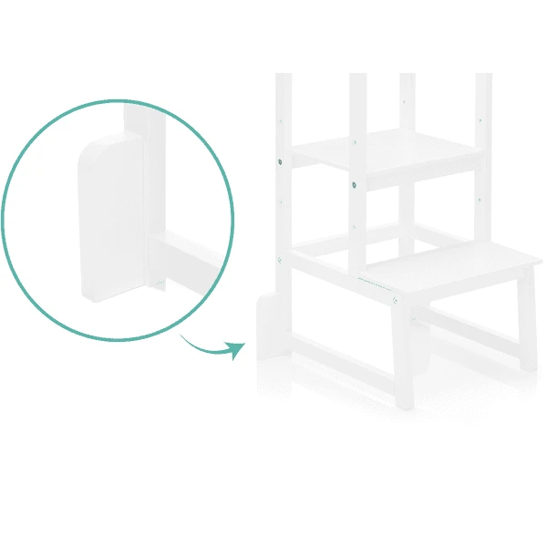 Is je kleine zonnestraaltje al erg nieuwsgierig en wil hij overal meehelpen of toekijken? Dan is de leertoren van Fillikid Omdat de kleintjes zo snel opgroeien, kan de hoogte van de standaard perfect worden aangepast aan de huidige grootte van het kind. De ronde staaf dient om zich aan vast te houden en natuurlijk als bescherming tegen uitvallen. Zo kan je zonnetje overal bij helpen, of het nu gaat om koken, bakken of zelfs tandenpoetsen, deze toren is een optimaal hulpje als de beentjes weer eens te kort lijken. Spelen en leren op ooghoogte met ouders of grote broers en zussen helpt je kind om heel snel sociale interacties te ervaren en bevordert hun vaardigheden en helpt de band met elkaar te versterken. En aangezien Fillikid hecht veel belang aan duurzame productie en de kortst mogelijke transportroutes, de leertoren is gemaakt van 100% Europees hout in de EU. Uiteraard worden alleen in Duitsland geproduceerde en gecertificeerde lakken gebruikt.