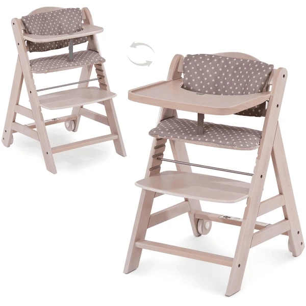 - Met wielen, eetblad en tweedelig zitkussen
