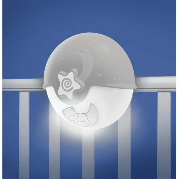 Deze all-rounder kan zowel als nachtlichtje aan een babybedje bevestigd worden als ook later als bedlampje gebruikt worden.