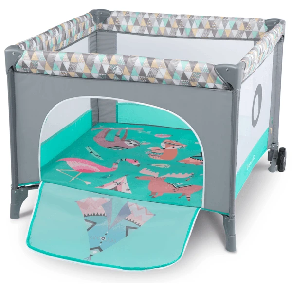 De rits naar de zij-ingang bevindt zich aan de buitenkant van de box. Uw kind is dus veilig, alleen kan het niet van binnenuit open. Dit betekent dat peuters zelfstandig in en uit kunnen stappen via de ingang. Dit voorkomt riskante klimacties en bespaart u tillen. De box kan gebruikt worden als extra bed, reisbed maar ook als speelkleed. De vierkante vorm biedt voldoende ruimte voor uw kind en de baby speelgoed.