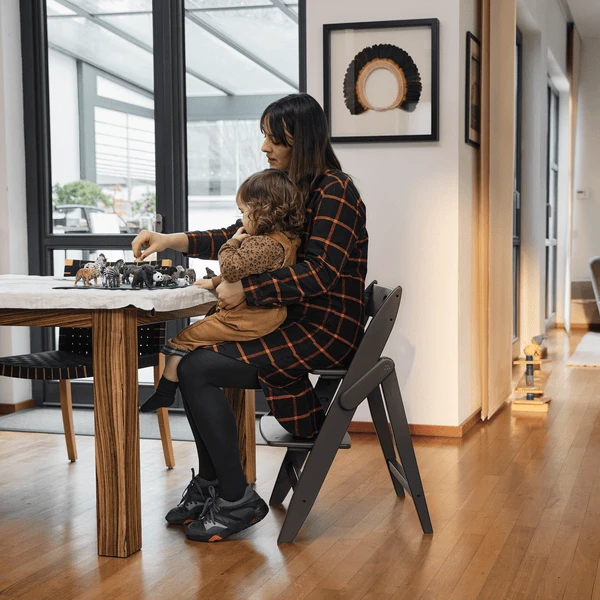 - De handgreep in de rugleuning van de hoge stoel vergemakkelijkt ook het vervoer