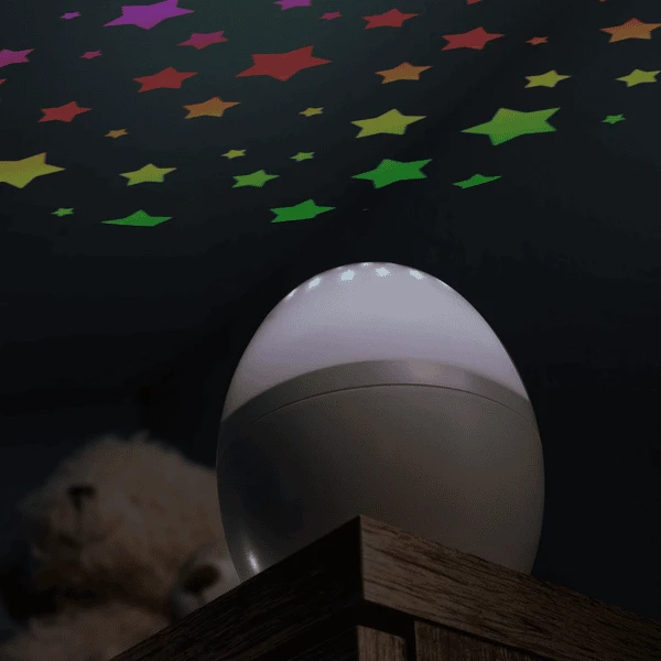 - Kalmerende sterdans door lichtprojectie en kleurverandering