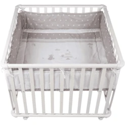 Houten box met rechte spijlen. Opgebouwd biedt deze 4-hoekige box (100 x 100 cm) van Roba een groot speel- en knuffeloppervlakte, bovendien is het lekker zacht dankzij het grote boxkleed. De box is in 3 hoogtes verstelbaar. De wieltjes zorgen ervoor dat de box eenvoudig te verplaatsen is. Kortom een ideale en ruime box!