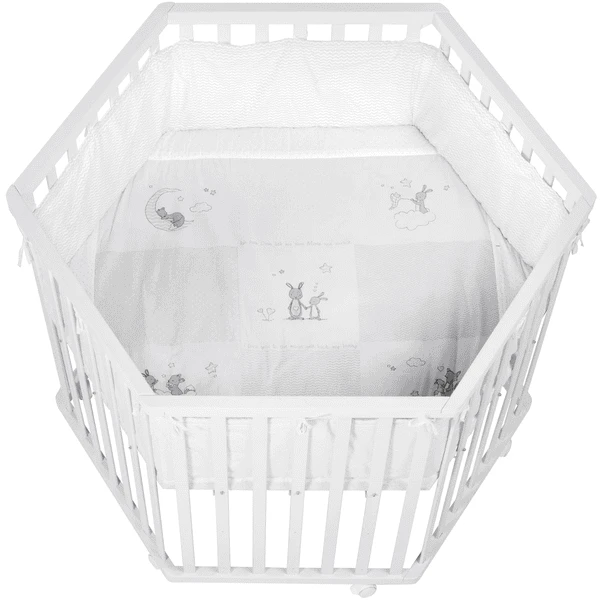 Opgebouwd biedt deze 6-hoekige box van Roba een groot speel- en knuffeloppervlakte, bovendien is het lekker zacht dankzij het grote boxkleed.