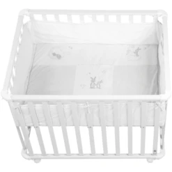 Houten box met rechte spijlen. Opgebouwd biedt deze 4-hoekige box (75 x 100 cm) van Roba een groot speel- en knuffeloppervlakte, bovendien is het lekker zacht dankzij het grote boxkleed. De box is in 3 hoogtes verstelbaar. De wieltjes zorgen ervoor dat de box eenvoudig te verplaatsen is. Kortom een ideale en ruime box!